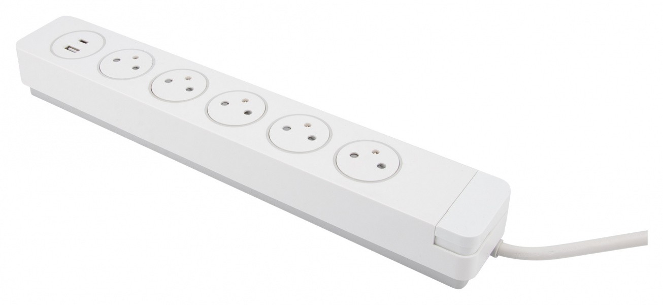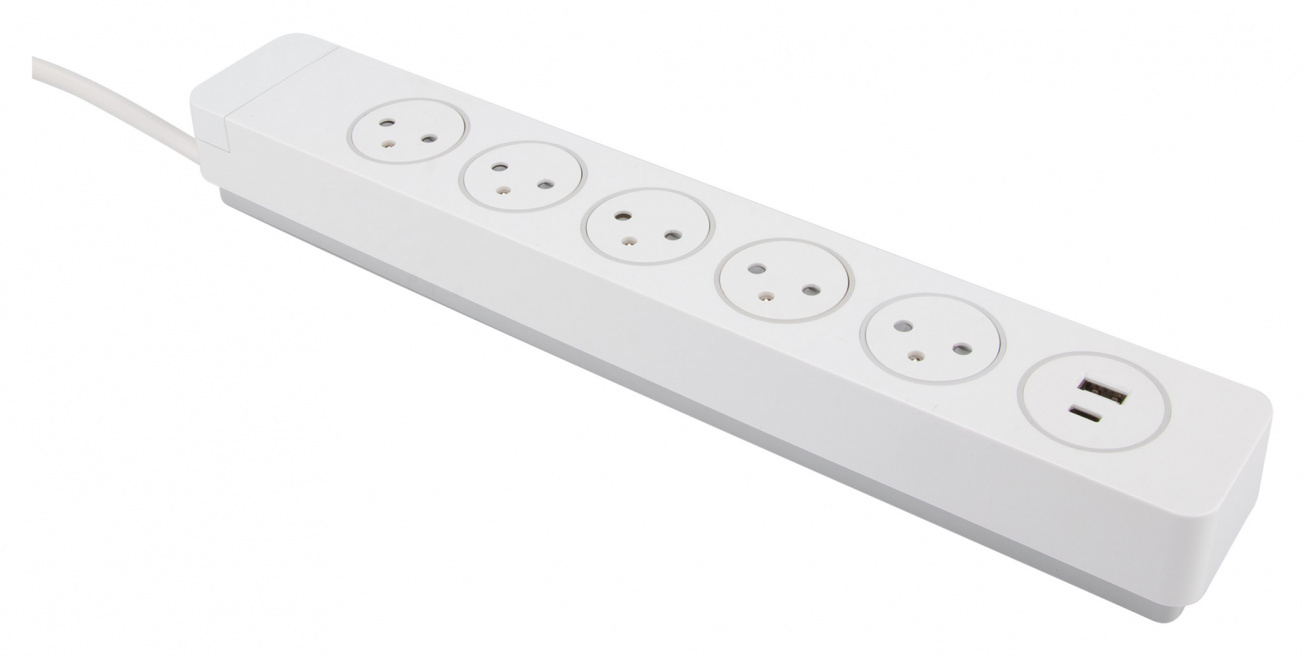 Cette multiprise vous permet de branchez et débranchez sans effort vos appareils grâce aux prises Easy Eject, elle protége vos appareils électriques des surtensions grâce à la protection parafoudre intégrée. Disposez d'un bloc multiprise élégant qui devient un réel objet de décoration avec son design épuré et ses prises affleurantes. Gérez indépendamment l'alimentation de vos appareils, ou utilisez l'interrupteur à pied pour couper l'alimentation du bloc multiprise. Vous pourrez également recharger rapidement tous types d'appareils multimedias avec les chargeurs USB type A et C. De plus, la fiche plate permet un gain de place derrière les meubles, tout en étant facilement retirée du mur grâce à son anneau d'extraction. Nombre de prises : 5x16A (2P+T). Système EasyEject : une simple pression suffit pour brancher/débrancher. Ports USB : 2 ports USB type A et type C : 2,4A max (12W). Protection parafoudre : 6KV. Interrupteur à piedFiche plate avec anneau d'extraction. Fixation murale possible. Dimensions : 38 x 4.5 x 6 cm.