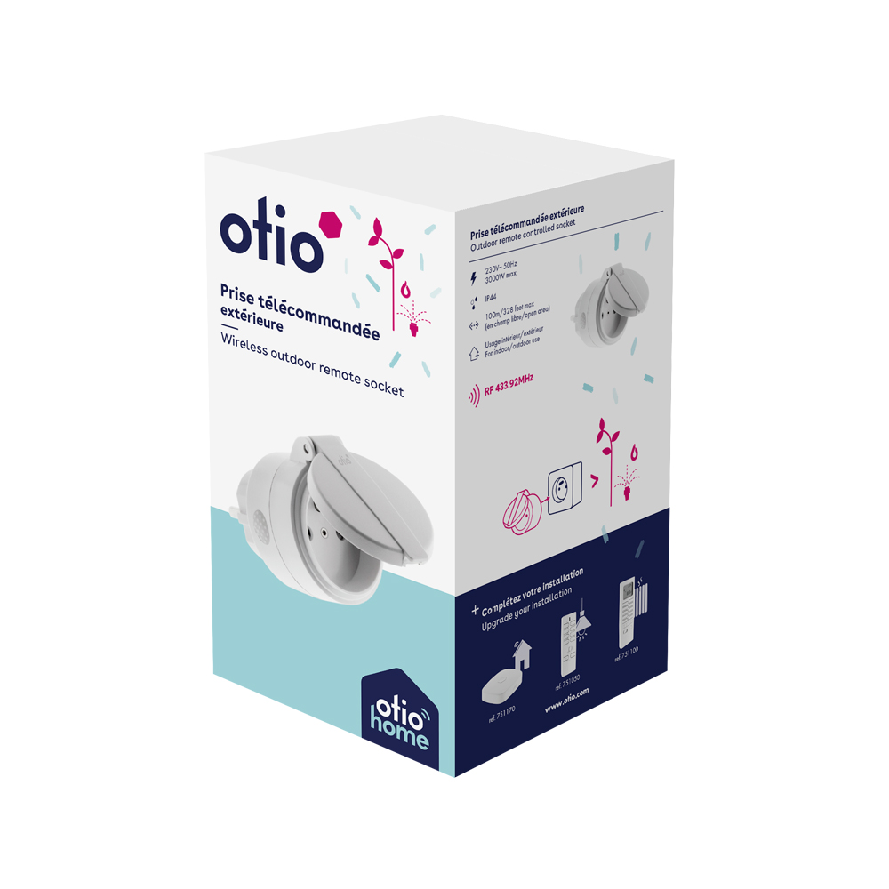 La prise connectée d'extérieur Otio IP44 vous offre un contrôle simple et flexible de vos appareils électriques en extérieur. Grâce à sa protection IP44, elle résiste aux intempéries et s'adapte parfaitement aux environnements extérieurs. Vous pouvez allumer et éteindre vos équipements à distance via une télécommande ou l'application OtioHome (passerelle vendue séparément), pour une gestion pratique et sécurisée. Sa portée radio de 100 mètres vous garantit une bonne communication, même à distance. Compatible avec plusieurs accessoires Otio, elle simplifie l'automatisation de votre jardin ou terrasse.