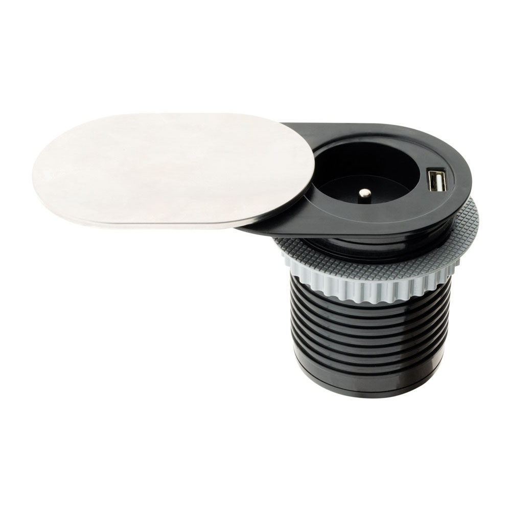 Le bloc prise encastrable compact Otio est la solution idéale pour répondre à vos besoins d'alimentation électrique dans votre bureau ou votre cuisine ! Sa discrétion et son design épuré en finition inox en font un ajout harmonieux et fonctionnel à n'importe quel plan de travail. Cette prise encastrable polyvalente comprend une prise monoposte 2P+T pour alimenter vos appareils électriques standard et un chargeur USB 2.4A de type A ou C (selon les modèles) pour recharger rapidement vos appareils nomades tels que smartphones et tablettes. Grâce à son clapet à glissière ou à clapet, vous pouvez ouvrir et fermer cette prise en toute simplicité ! Ce bloc prise encastrable compact est également conçu pour minimiser l'encombrement. Sa fiche extraplate avec anneau d'extraction limite l'espace nécessaire derrière les meubles, et il est compatible avec le passage de câble des bureaux de Ø60 mm de diamètre, ce qui facilite son installation sans besoin d'outil. Avec un encombrement sous le plan de travail de seulement 7,8 cm, cette prise encastrable compacte vous permet d'optimiser l'espace de votre environnement de travail tout en vous offrant une solution de branchement efficace. De plus, ce produit est conforme aux normes CE/FR et est accompagné d'une garantie de 2 ans, garantissant sa qualité et sa durabilité. Transformez votre espace de travail ou votre cuisine avec le bloc prise encastrable compact Otio pour une alimentation électrique discrète et efficace !
