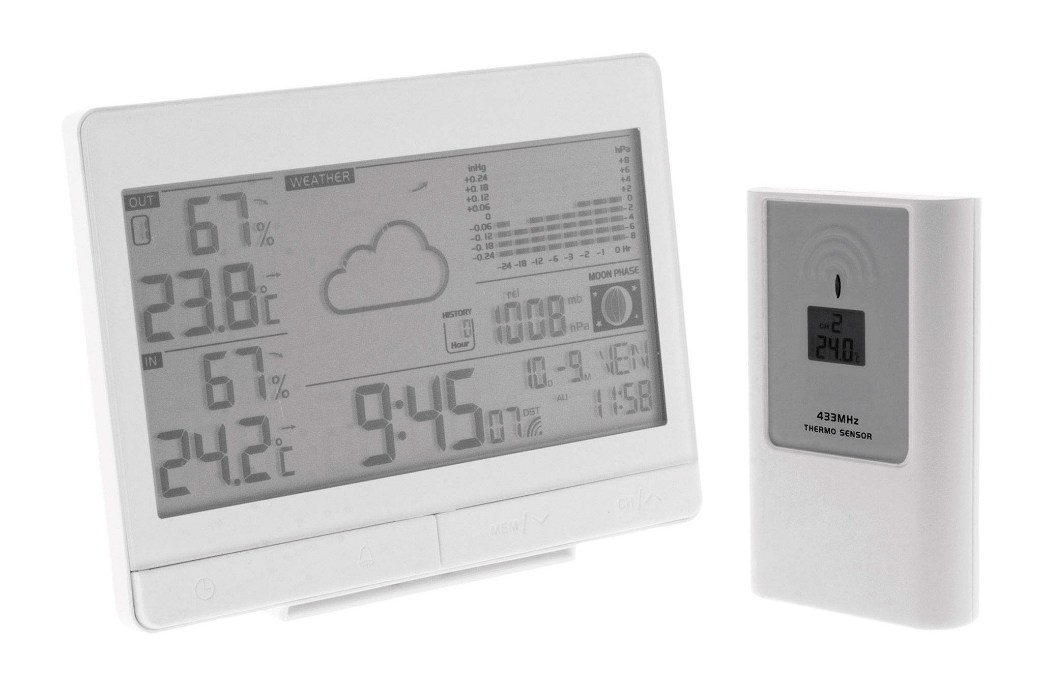 Cette station météo de haute qualité, avec son capteur extérieur, vous permet d'accéder à vos données environnementales locales essentielles. Dotées de fonctions : prévisions météo, tempréatures intérieures et extérieures, humidité intérieure et extérieure, pression atmosphérique, phase de lunes... elle possède un affichage très clair et sans surchage. La mémorisation des min/max sur les 24 dernières heures et sa fonction alerte en cas de gel permet d'être informé à tout moment des variations du climat local. Son écran rétroéclairé temporairement, propose un affichage à très fort contraste et offre une lisibilité exceptionnelle jusqu'à plus de 10m quel que soit l'endroit où vous vous trouvez dans la pièce. Elle peut gérer jusqu'à 3 capteurs sans fil (1 seul fourni). Son niveau de finition, associé à une précision et une grande stabilité de ses capteurs de mesre en font un instrument de haute qualité.